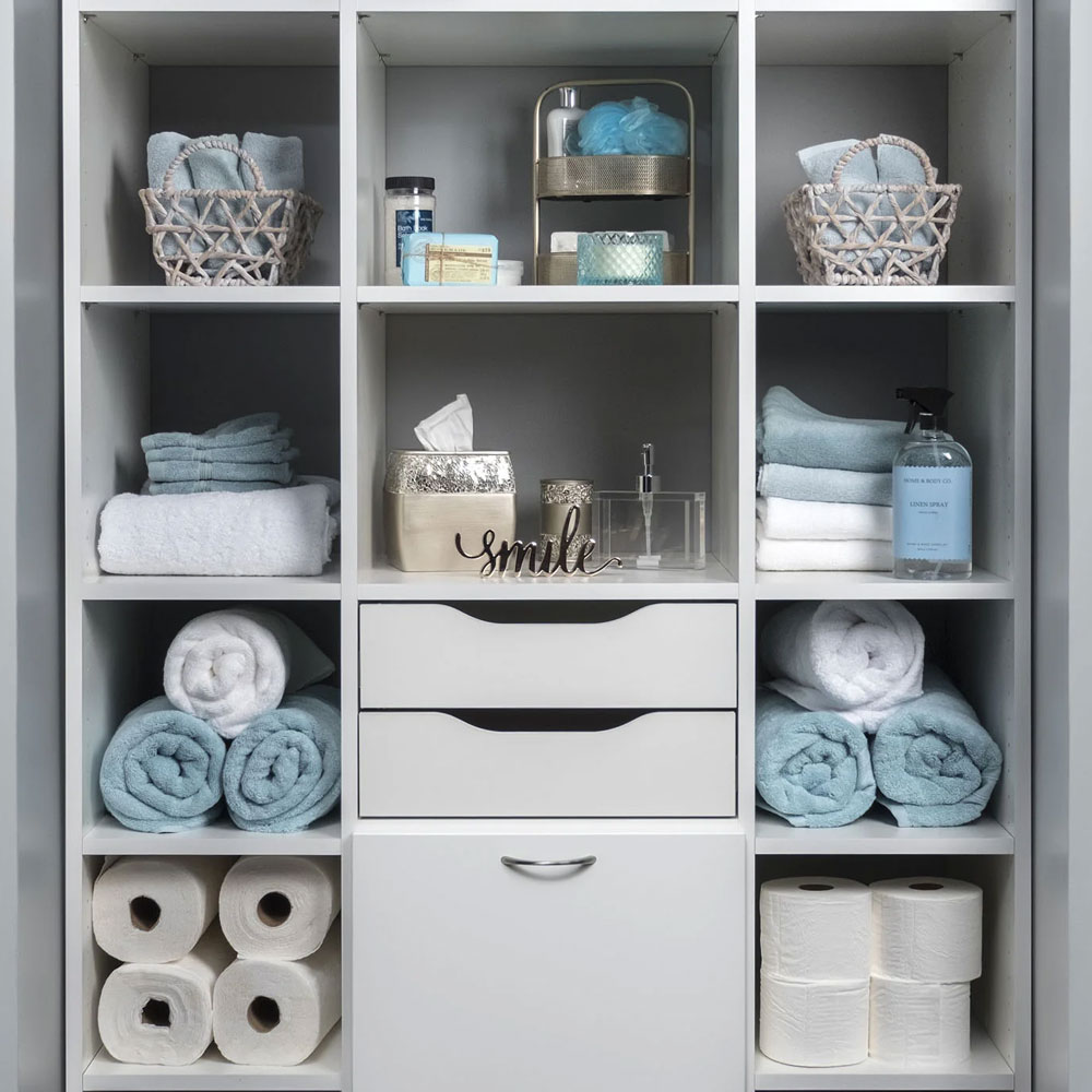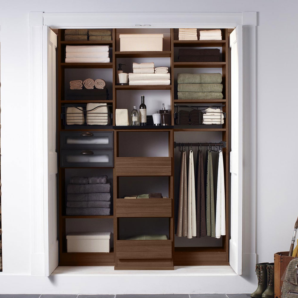 Create a well-designed linen closet that utilizes vertical and horizontal storage to hold everything from towels, bed linens & more. Adjustable linen closet shelving, slide-out racks, pullout baskets and drawers adapt to changing needs. Deep storage spaces accommodate bulky items such as blankets and comforters.