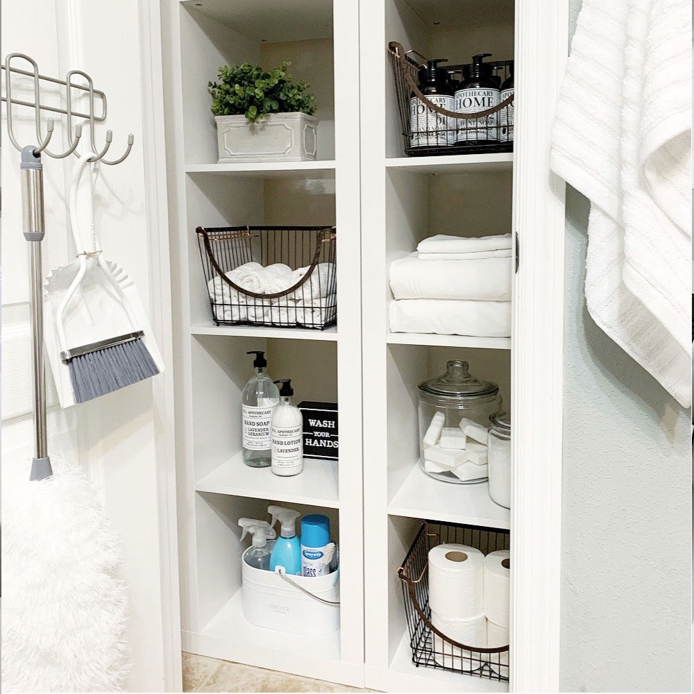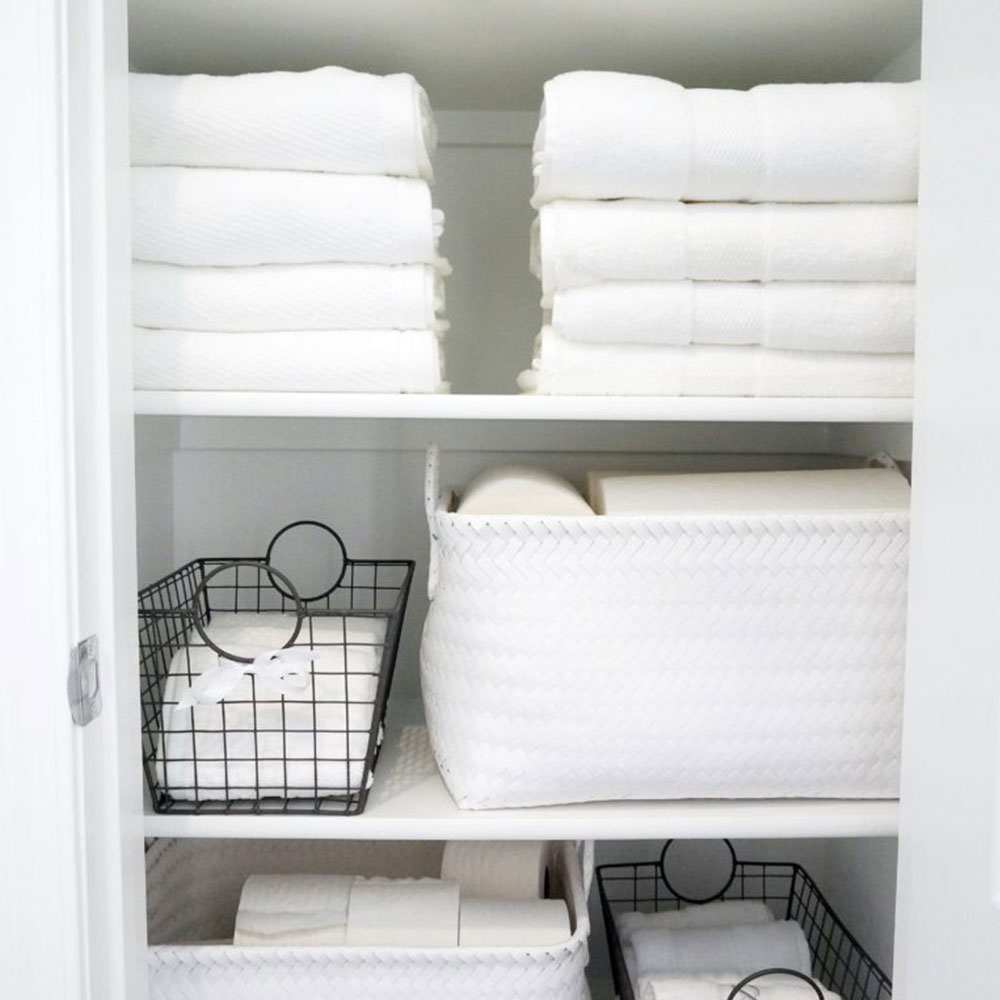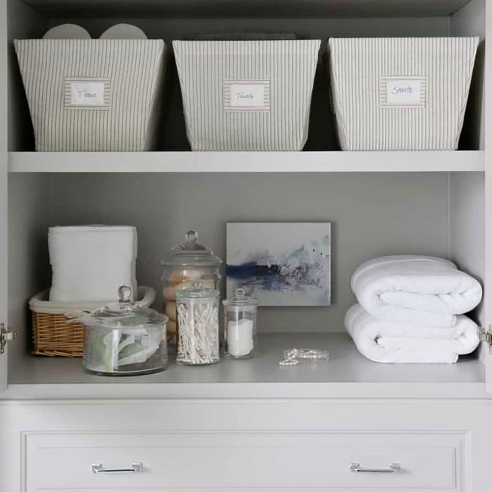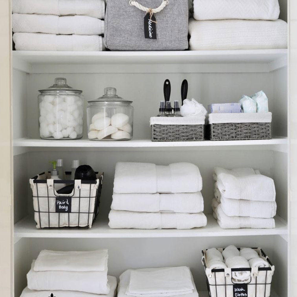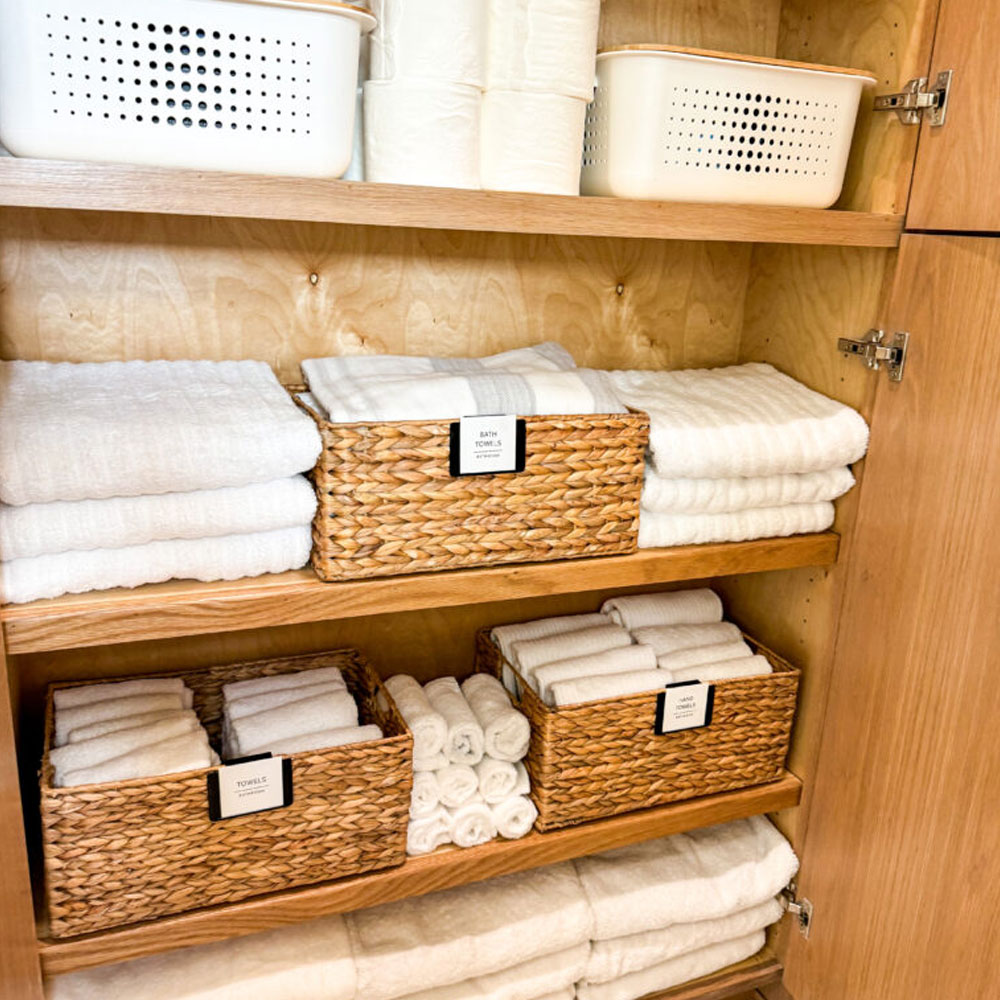 Simple storage for compact spaces. Organization doesn’t end in the kitchen, a personalized linen closet provides easy access to everyday essentials.